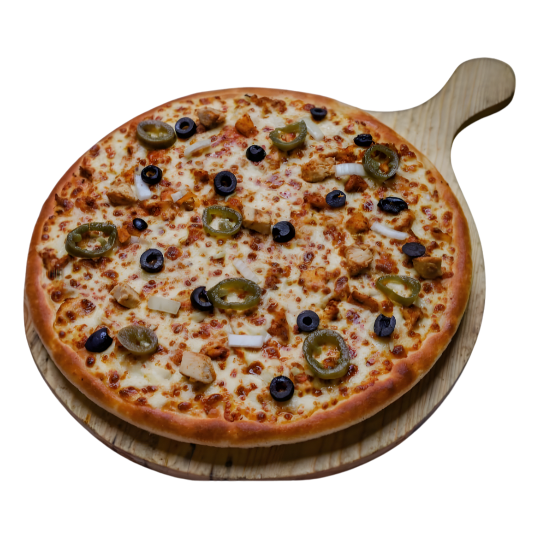 Fresh mushrooms, bell peppers and onions over a pizza sauce base.